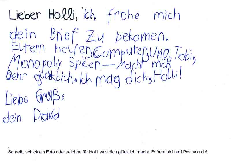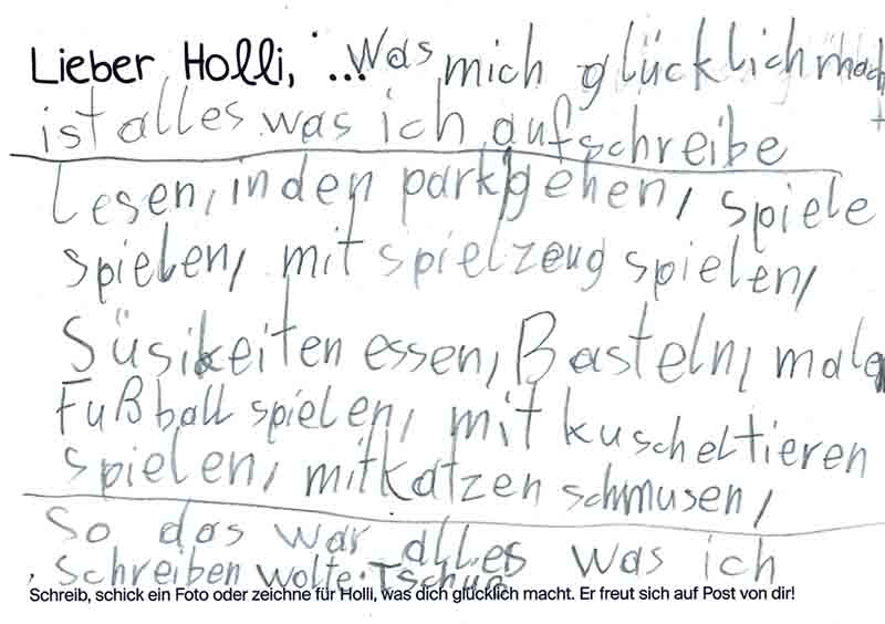 Erinnert ihr euch? Neulich hab’ ich euch in einem Brief gefragt, was euch glücklich macht und ob ihr mir nicht eine Postkarte schicken möchtet.